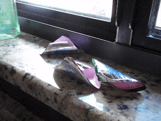 It is the window ledge above my sink. And those are the foil yogurt lids that my husband so sweetly leaves for me.
